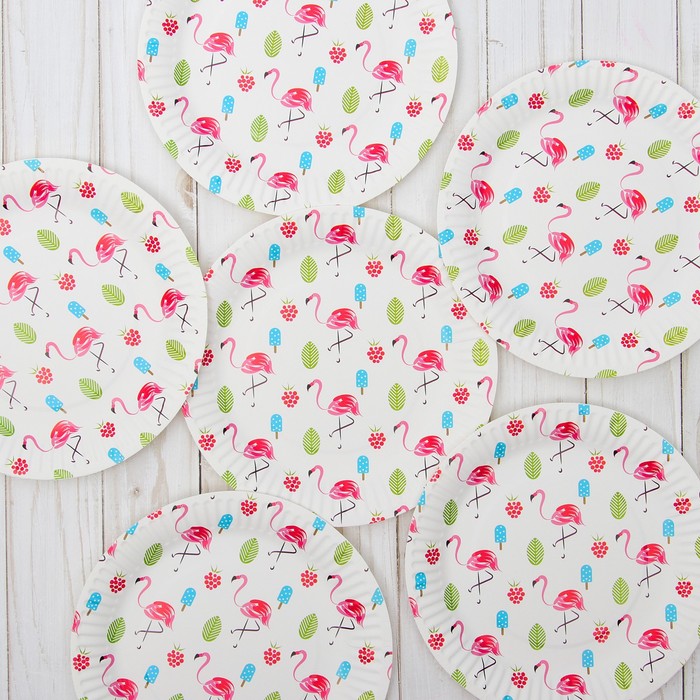 Тарелка бумажная "Фламинго", (набор 6 шт)