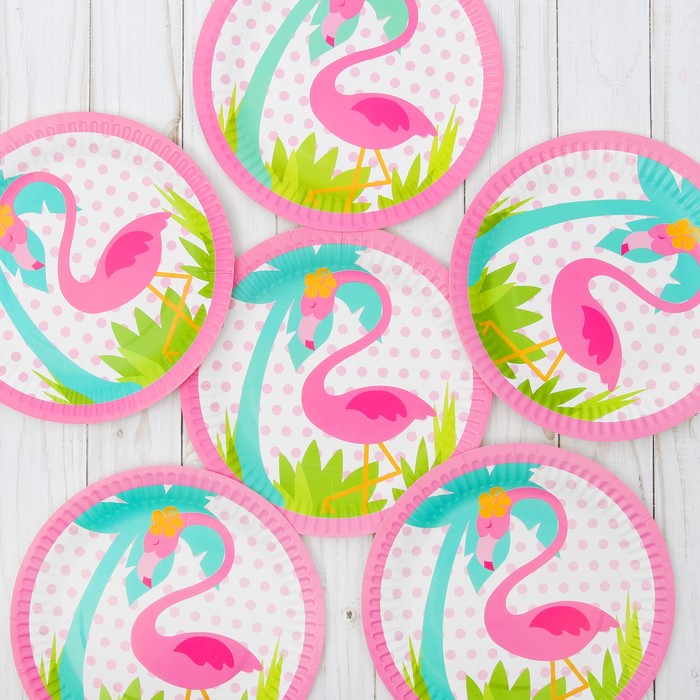 Тарелка бумажная "Фламинго под пальмой", (набор 6 шт)