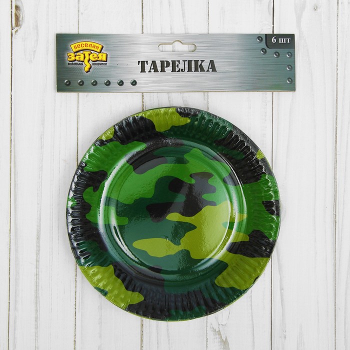 Тарелка бумажная "Камуфляж", 6 шт, 17 см