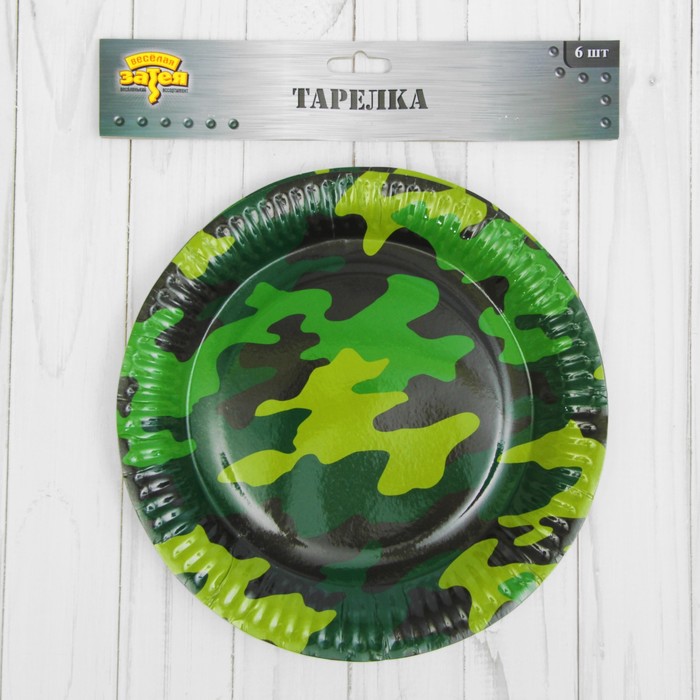 Тарелка бумажная "Камуфляж", 6 шт, 23 см