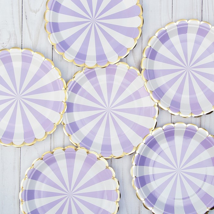 Тарелка бумажная "Полоска" цвет сиреневый и белый (набор 6 шт)