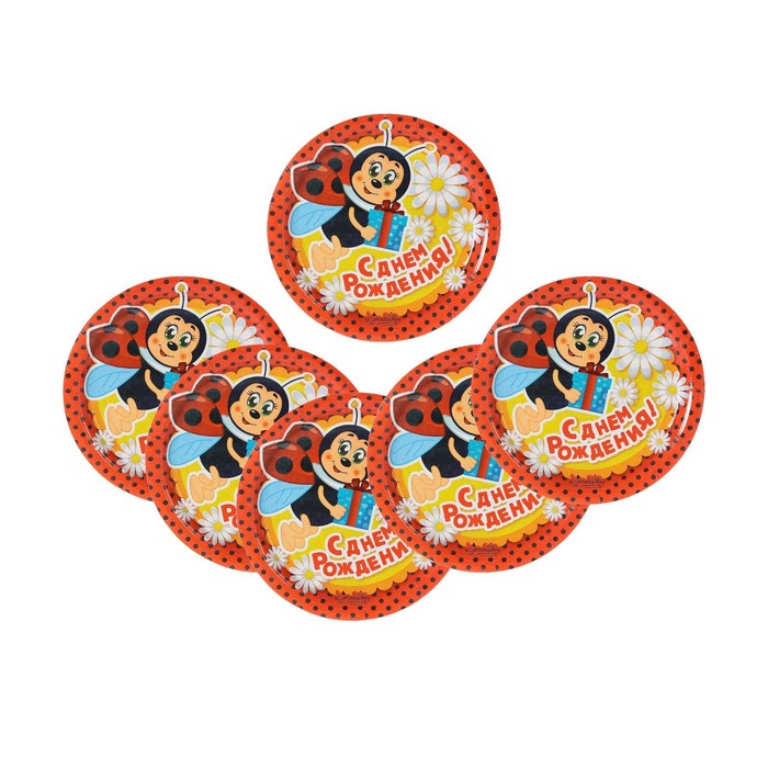 Тарелка бумажная "С днем рождения" божья коровка и ромашка, 18 см