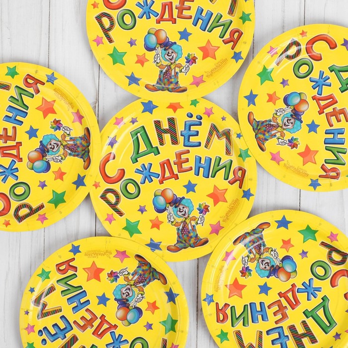 Тарелка бумажная "С днем рождения" клоун (набор 6 шт)