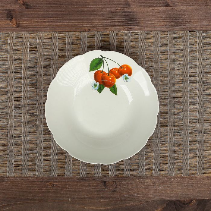 Тарелка d=24 см "Суповая" вишня, деколь