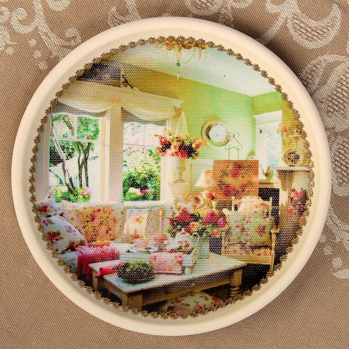 Тарелка декоративная «Цветочная комната», с рисунком на холсте, настенная, D = 16 см