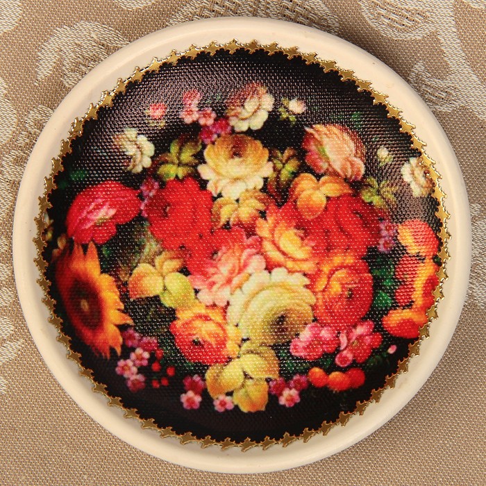 Тарелка декоративная «Жостово», с рисунком на холсте, настенная, D = 11,5 см