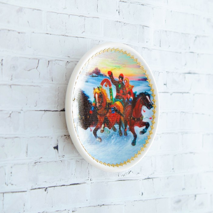 Тарелка декоративная «Зимняя тройка», с рисунком на холсте, настенная, D = 11,5 см