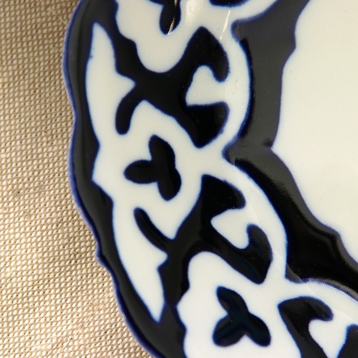 Национальная узбекская роспись «Пахта» сдержанна и благородна. Витиеватые узоры выводятся тонкой кистью, а фон заливается кобальтом. Синий краситель при обжиге слегка растекается и придаёт контуру изображений голубой оттенок. Густая глазурь наносится толстым слоем, благодаря чему рисунок мерцает.