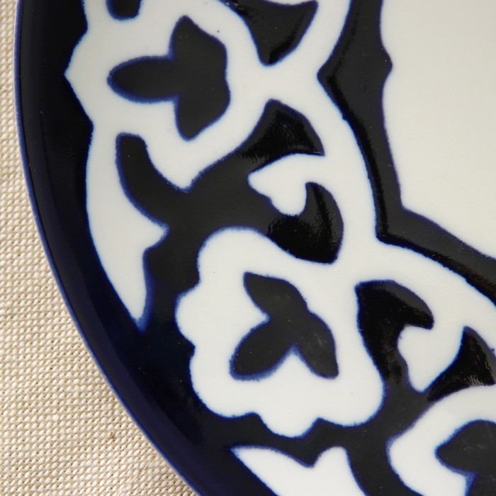Национальная узбекская роспись «Пахта» сдержанна и благородна. Витиеватые узоры выводятся тонкой кистью, а фон заливается кобальтом. Синий краситель при обжиге слегка растекается и придаёт контуру изображений голубой оттенок. Густая глазурь наносится толстым слоем, благодаря чему рисунок мерцает.