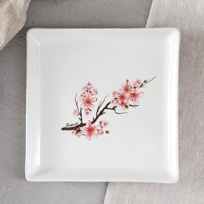Тарелка "Квадрат" для суши, белая с деколью, 19 см