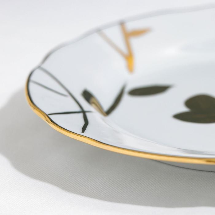 Тарелка из высококачественного фарфора станет удачным дополнением домашней утвари. Изделие марки «Дулёвский фарфор» отличается тщательностью обработки поверхности и насыщенностью классического рисунка. Такая посуда пригодится дома, в офисе и на даче.