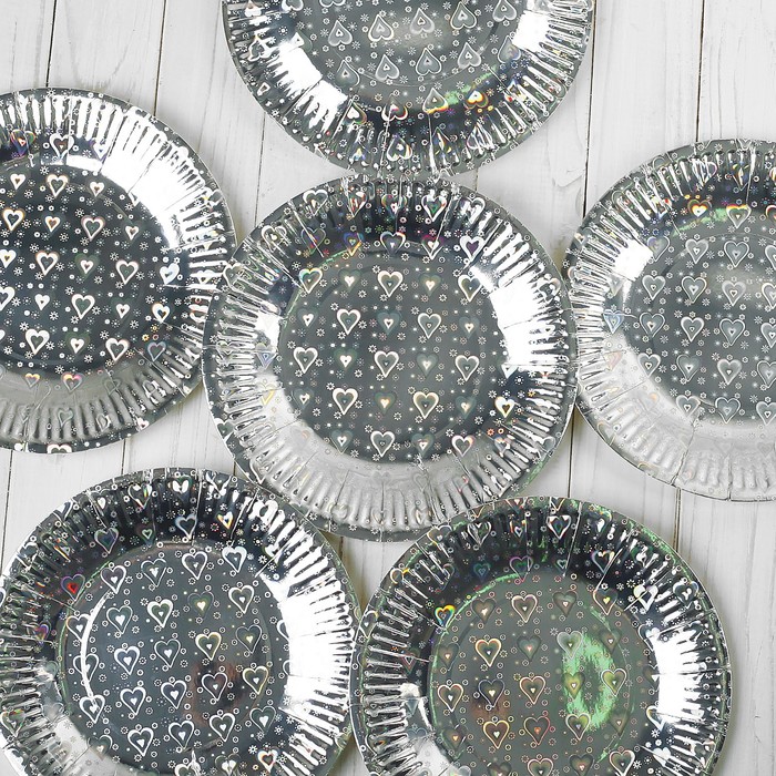 Тарелка (набор 6 шт) голография в сердечко, цвет серебро