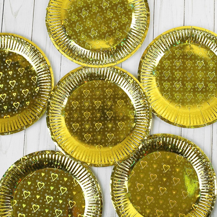 Тарелка (набор 6 шт) голография в сердечко, цвет золото