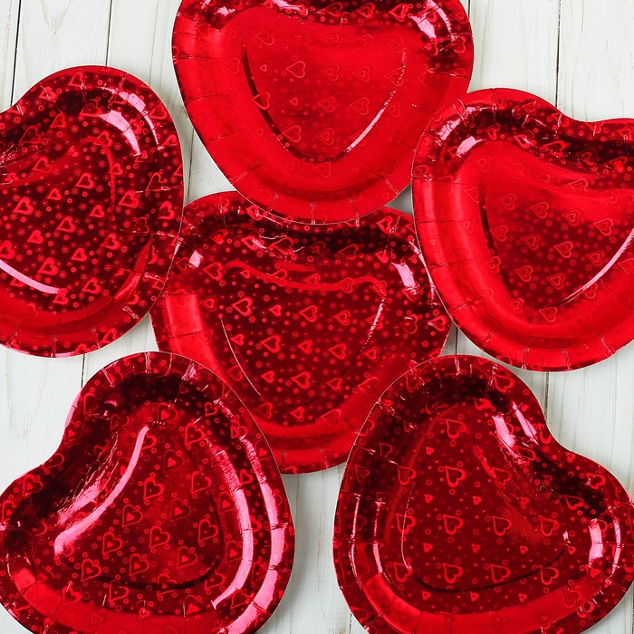 Тарелка в форме сердца (набор 6 шт) голография, цвет красный