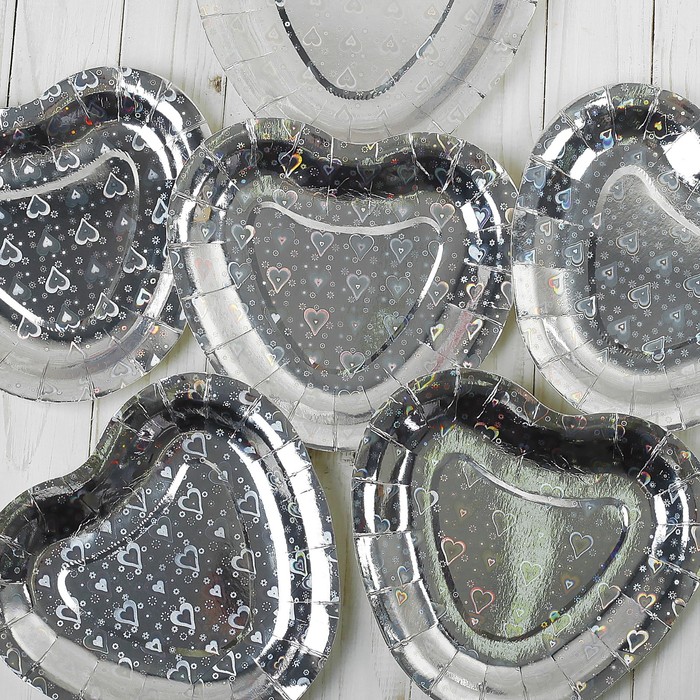 Тарелка в форме сердца (набор 6 шт) голография, цвет серебро