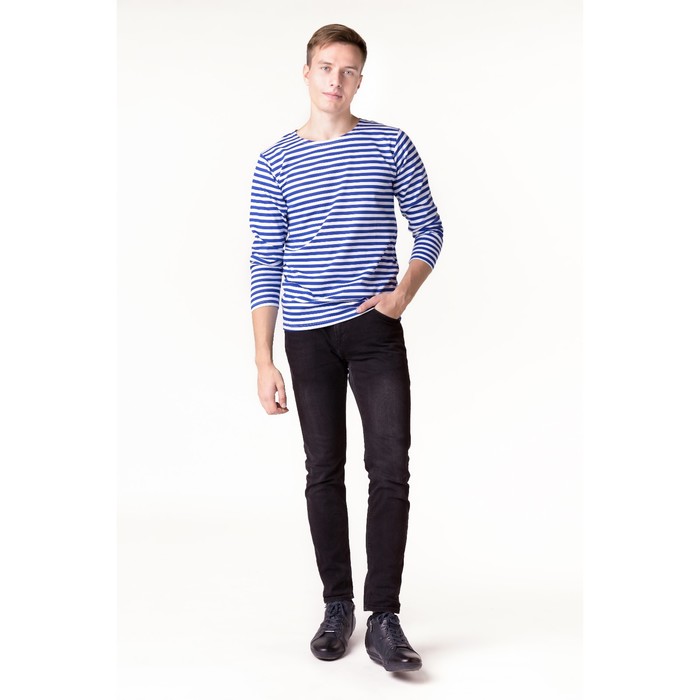 Тельняшка мужская синяя, размер 50 — выбор стильных людей. Вещь изготовлена из качественных и безопасных материалов, а над дизайном работала команда настоящих профессионалов.