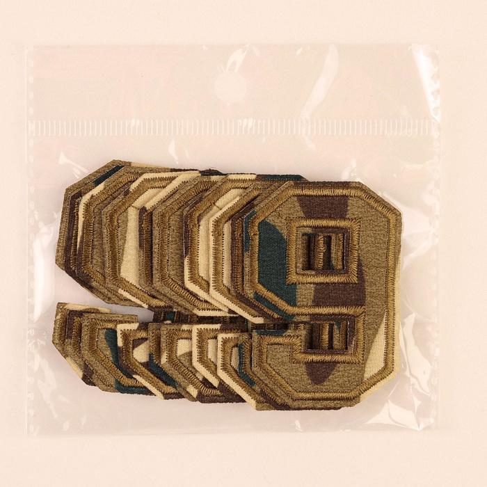 Термоаппликация "9", 5,5*4см, цвет хаки