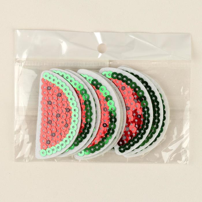 Термоаппликация "Арбуз", с пайетками, 6*3см, цвет красный