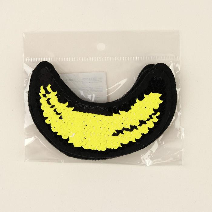 Термоаппликация "Банан", с пайетками, двусторонняя, 11*7см, цвет жёлтый/белый