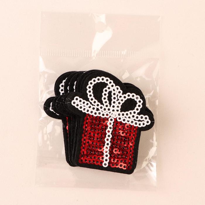 Термоаппликация "Подарок", с пайетками, 4,8*4,5см, цвет красный