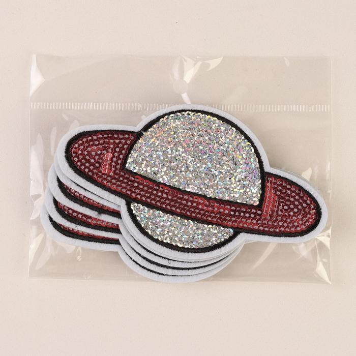 Термоаппликация "Сатурн", с пайетками, 11*6см, цвет серебристый/розовый