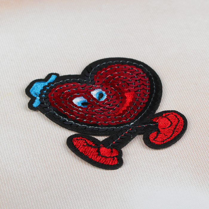 Термоаппликация "Сердце с ножками", с пайетками, 7,5*7см, цвет красный