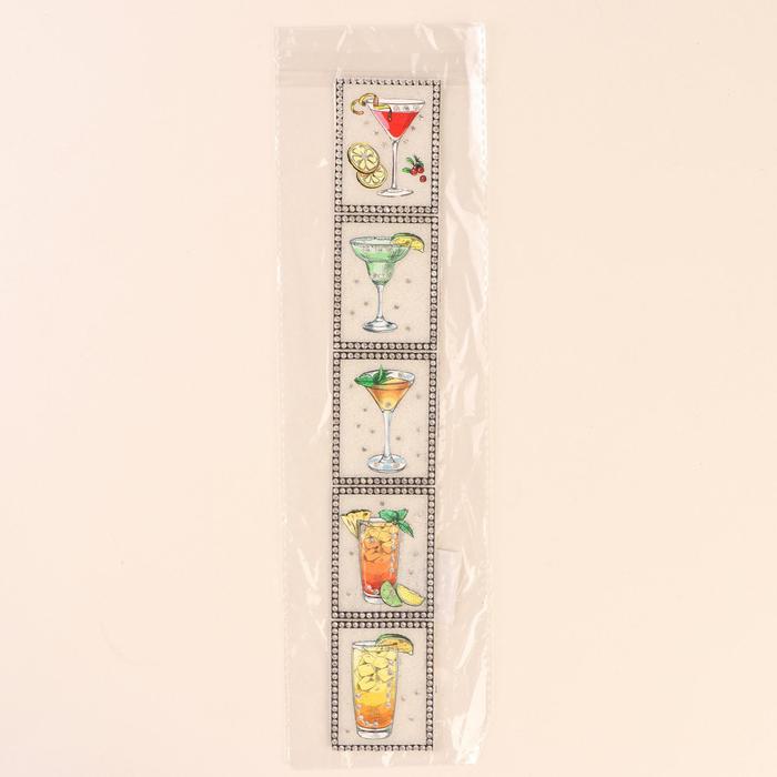 Термоаппликация со стразами «Коктейли», 5,5 × 4 см, 5 шт. на листе, цвет МИКС