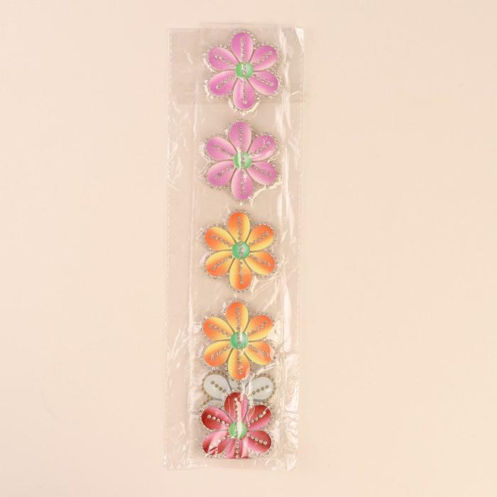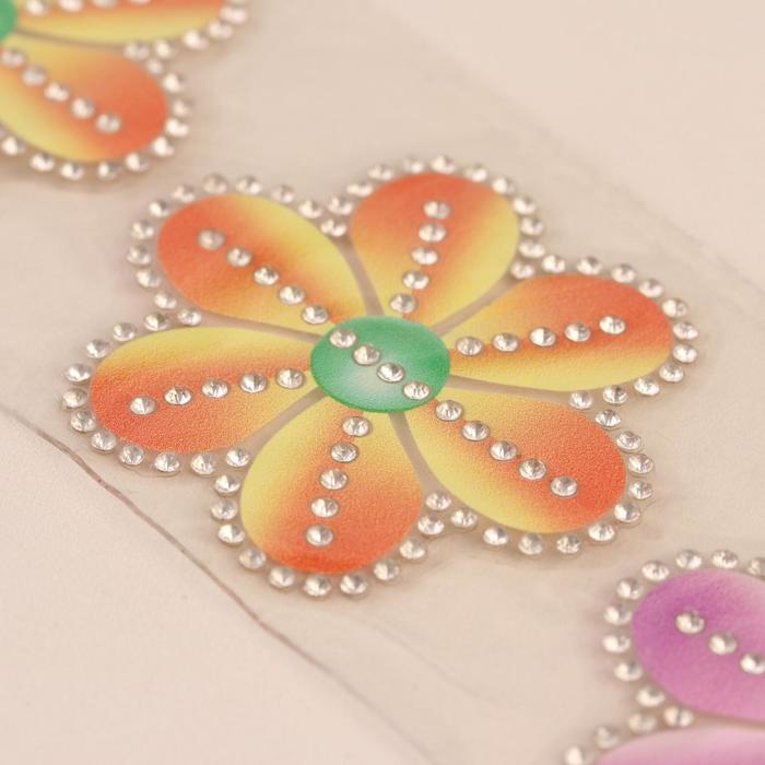 Термоаппликация со стразами "Ромашки", d=6см,, 6шт на листе, цвет МИКС