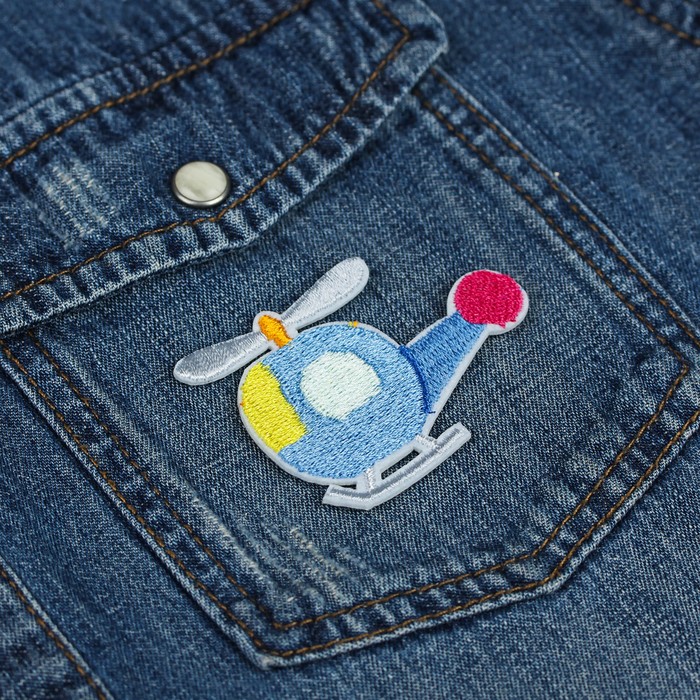 Термоаппликация "Вертолёт", 5,5*4см, цвет синий