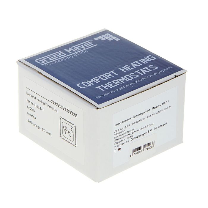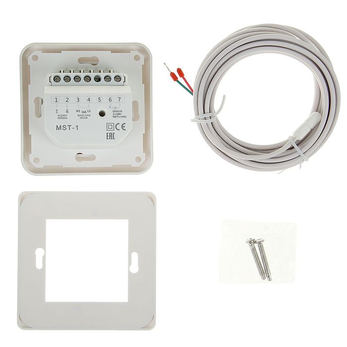 Терморегулятор Grand Meyer MST-1, механический, 3600 Вт, датчик пола NTC 3 м, IP20, белый