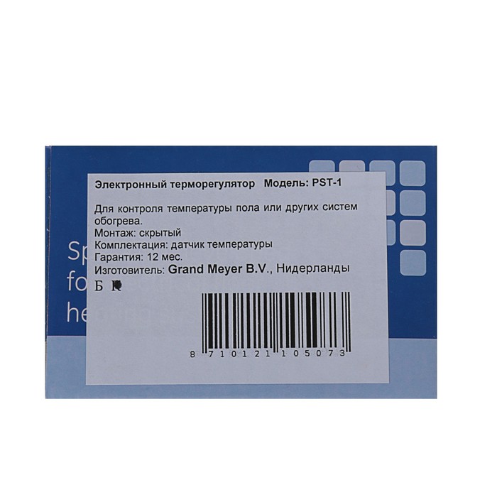 Мы предлагаем широкий ассортимент бытовой электроники. Терморегулятор Grand Meyer РST-1, программируемый, сенсор, 3600 Вт, датчик NTC, белый — это полезный и актуальный прибор, который прослужит долго и сделает вашу жизнь проще.