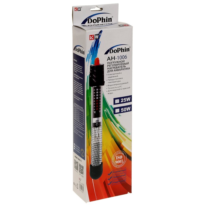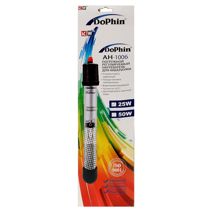 Терморегулятор KW DOPHIN 25 Вт, 225 мм, +/- 0.5 С абсолютно безопасен для ваших рыбок. С ним среда обитания будет одинаково удобна для водной флоры и фауны, а вы сможете наслаждаться созданным вами миром.
