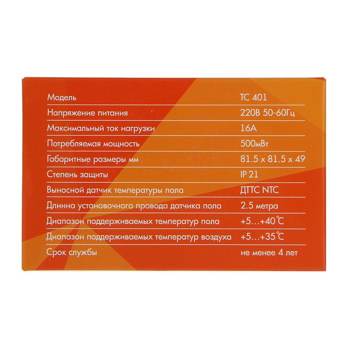 Терморегулятор ТС401, 3600 Вт, ЖК дисплей, 2 датчика, цифровое, белый