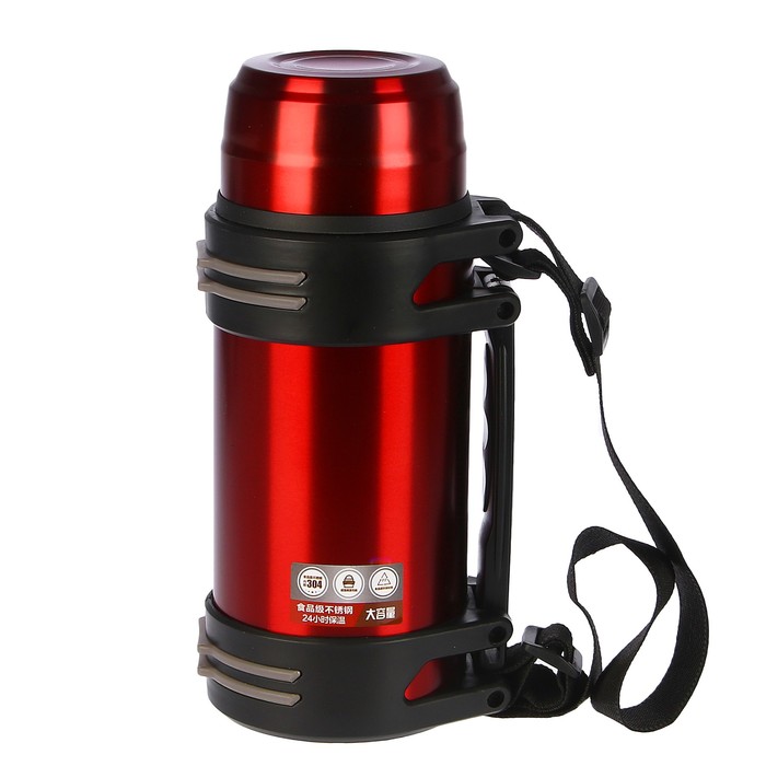 Термос 1600 мл, туристический, 304 сталь, держит тепло 24 ч, красный, 13х29 см