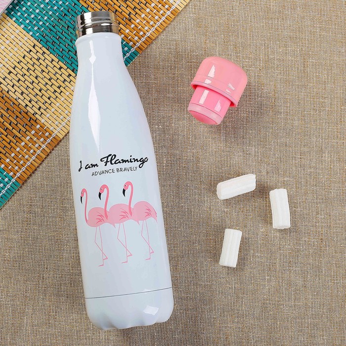 Термос 500 мл I am flamingo, в виде бутылки, 304 сталь, держит тепло 8 ч, микс, 7х26.5 см