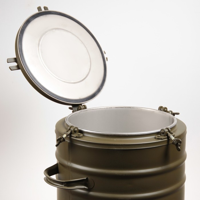 Армейский термос подходит для использования в полевых условиях. Изделие изготовлено из антикоррозийной стали, на поверхность корпуса нанесено атмосферостойкое лакокрасочное покрытие. В конструкции отсутствуют бьющиеся и хрупкие детали.