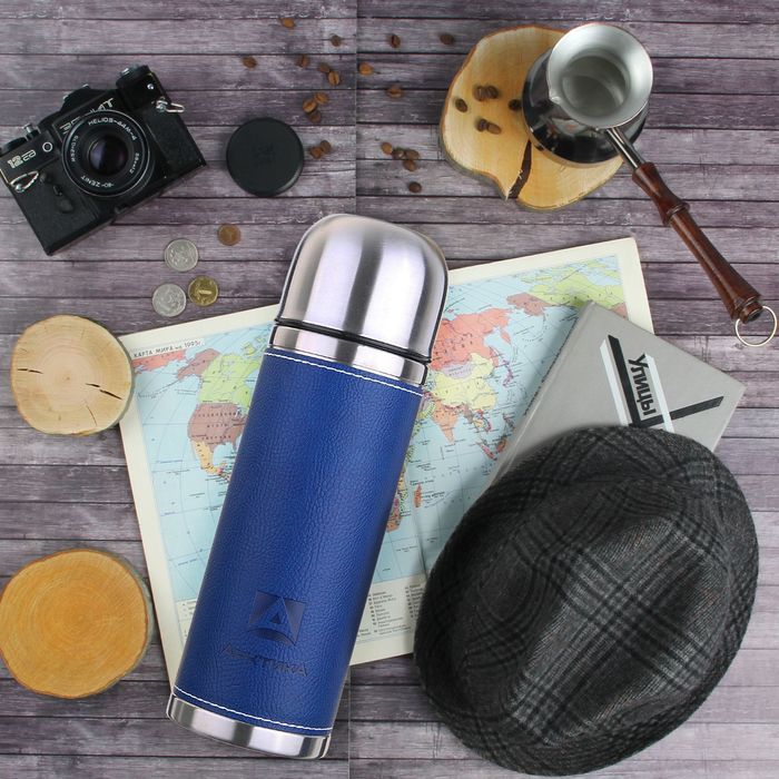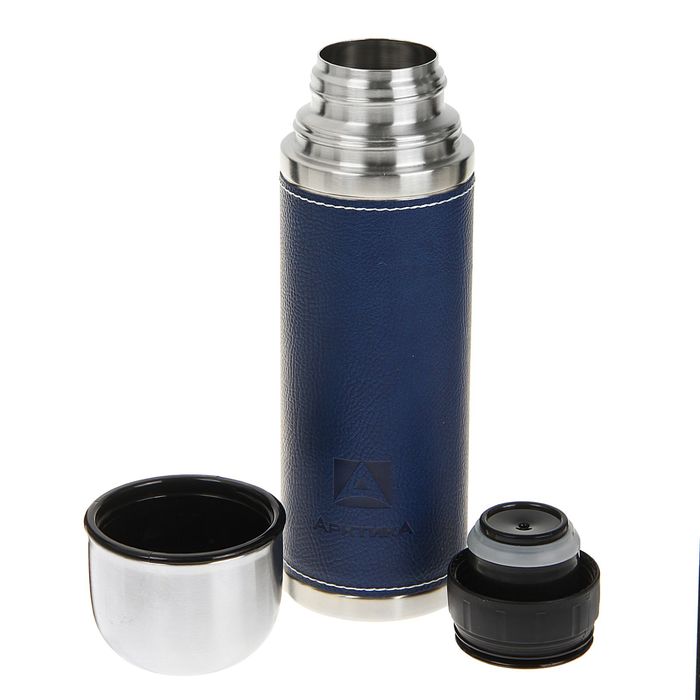 Термос питьевой «Арктика», бытовой, вакуумный, 0.5 л, в кожаной оплётке, синий