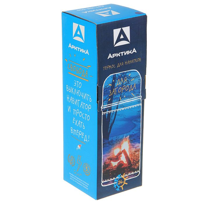 Термос питьевой «Арктика», бытовой, вакуумный, 0.5 л, в кожаной оплётке, синий отличается необычным дизайном: корпус обернут кожей. Этот материал позволяет использовать изделие зимой в перчатках и варежках, термос не проскальзывает и не выпадает из рук. Кожаный слой также защищает руки от холода стали и является дополнительным теплоизолятором. Сверху находится вместительная кружка-колпачок. Это компактный вариант для хранения напитков на отдыхе, охоте или рыбалке. Все пластиковые и силиконовые элементы нетоксичны, не вступают в реакцию с горячими жидкостями и продуктами.