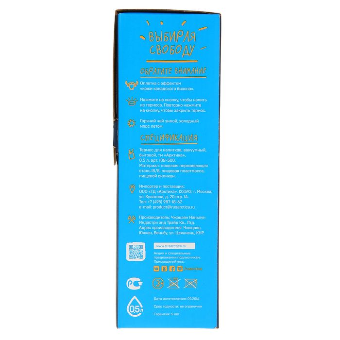 «Арктика», являясь признанным брендом металлической термопосуды, предъявляет жёсткие требования к продукции. В первую очередь, внимание уделяется надёжности, практичности, безопасности выпускаемых товаров, а также удобству и простоте в эксплуатации, эффективной термоизоляции в любую погоду и сезон.