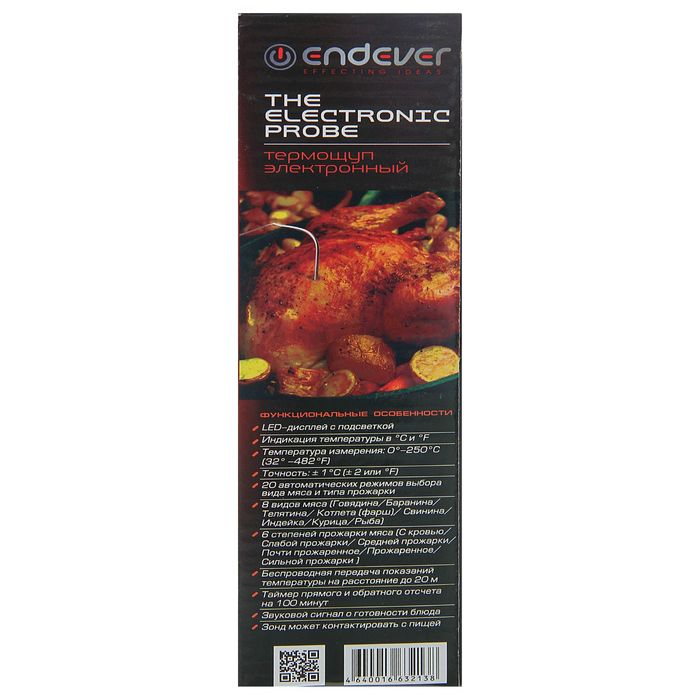 При помощи электронного термощупа Endever вы легко узнаете температуру и степень готовности блюда, не открывая при этом духовку. Также прибор поможет определить уровень нагрева жидкостей.