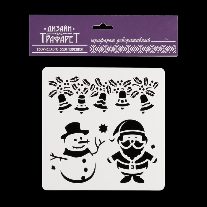 Трафарет квадратный "Дед Мороз и Снеговик" 15х15 см