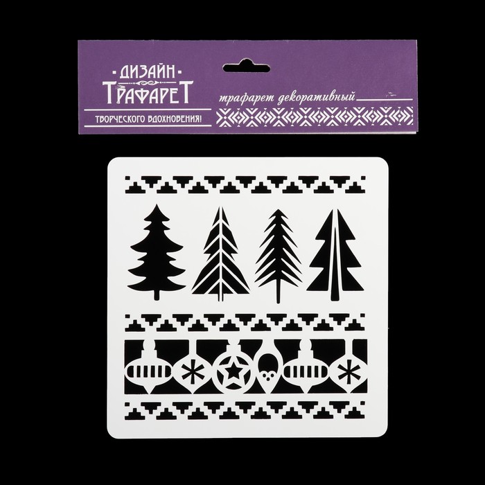 Трафарет квадратный "Елочки и игрушки" 15х15 см