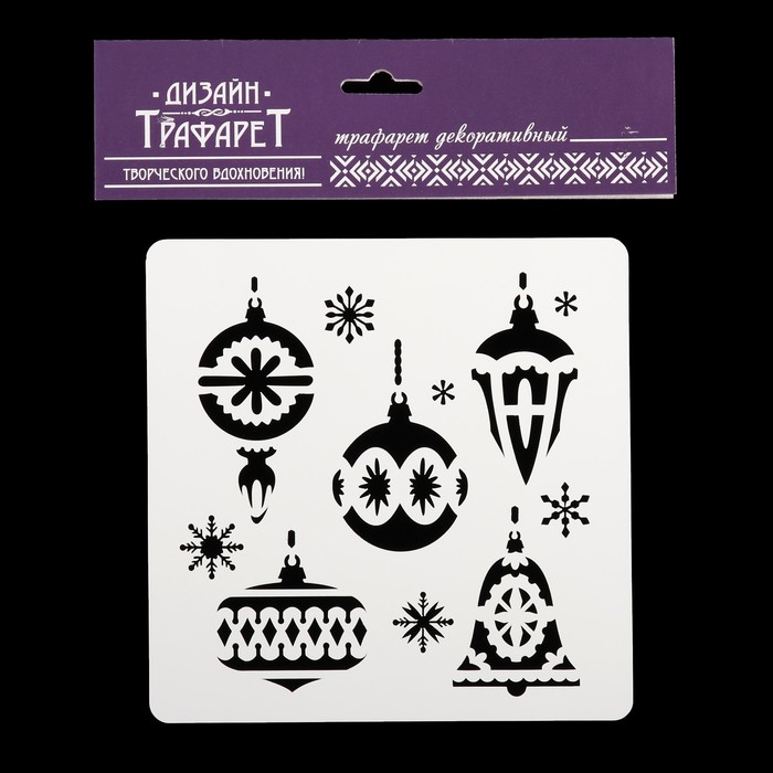 Трафарет квадратный "Елочные игрушки" 15х15 см