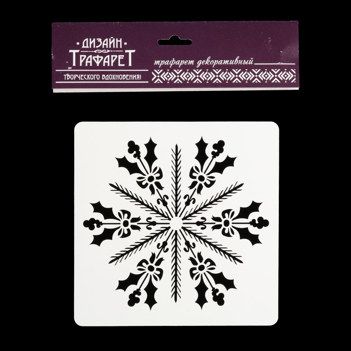 Трафарет квадратный "Еловая снежинка" 15х15 см