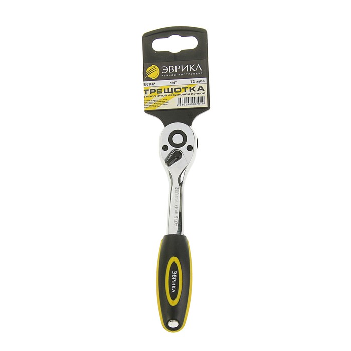 Трещотка "Эврика", 1/4", 72-зубцовая, с прямой резиновой ручкой