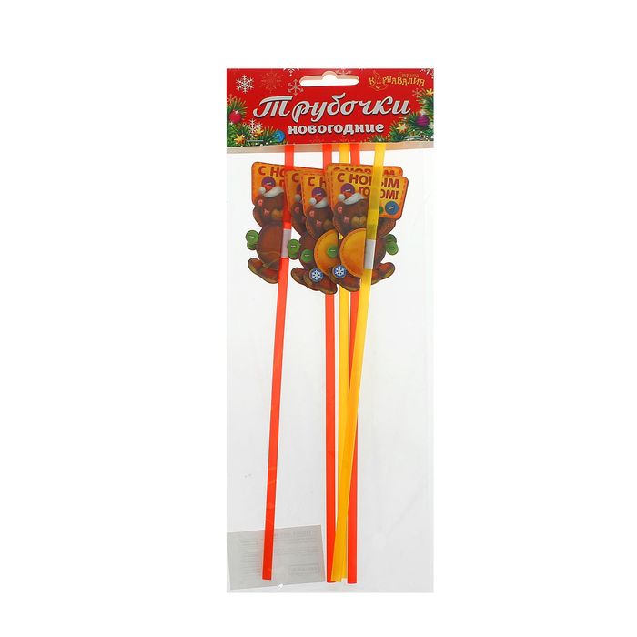 Трубочки гофре для коктейля "С Новым Годом!", мишка, (набор 6 шт.)