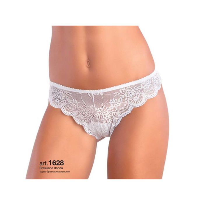 Трусы-бразилиана с ажурным поясом выполнены из кружева.
