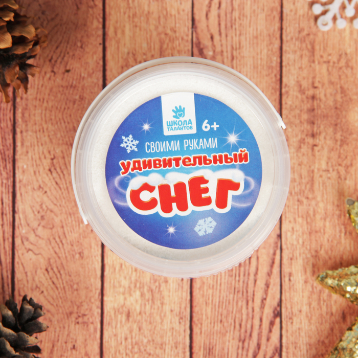 Оформите дом по-новогоднему ярко с помощью искусственного снега. Это праздничное украшение легко можно создать самому: добавьте воды в готовую смесь, подождите 5 минут — и пушистый нетающий снег готов. Из 100 г сухого вещества получится около 3 л снежного декора.