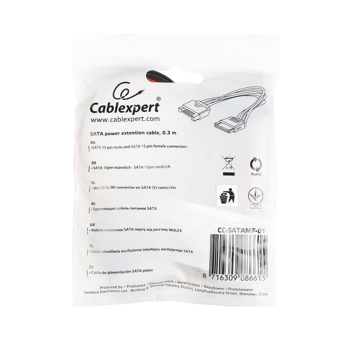Удлинитель кабеля питания SATA Cablexpert, 15pin(M)/15pin(F), 30см