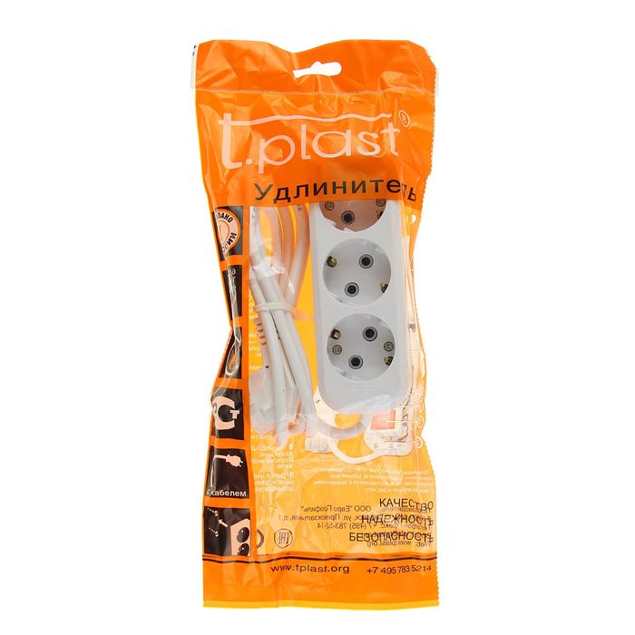 Удлинитель T.plast, 3 розетки, 1.5 м, 16 А, с з/к, 32.75.321.0450,